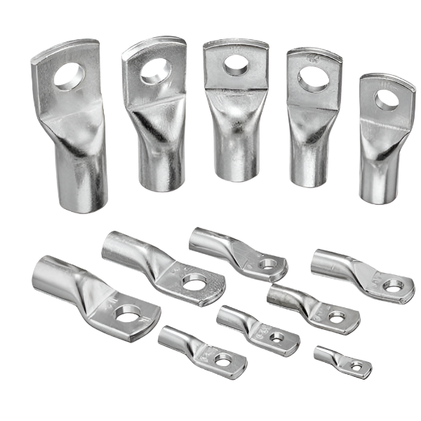 Copper Cable Lugs: These lugs are small, durable connectors commonly used for electrical connections. The first digits represent size of the cable to be crimped, second digit represent size of the connector bolt to secure lug to the bus bar. Copper lugs providing a compact yet reliable solution for various wiring applications. They are typically made of high-quality tinted copper and designed for secured and efficient electrical connections.