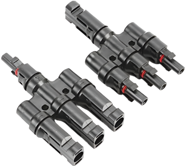 Pair of Two and Three Way MC4 Connectors for connecting solar panels in Parallel for increasing Current to combined panel output